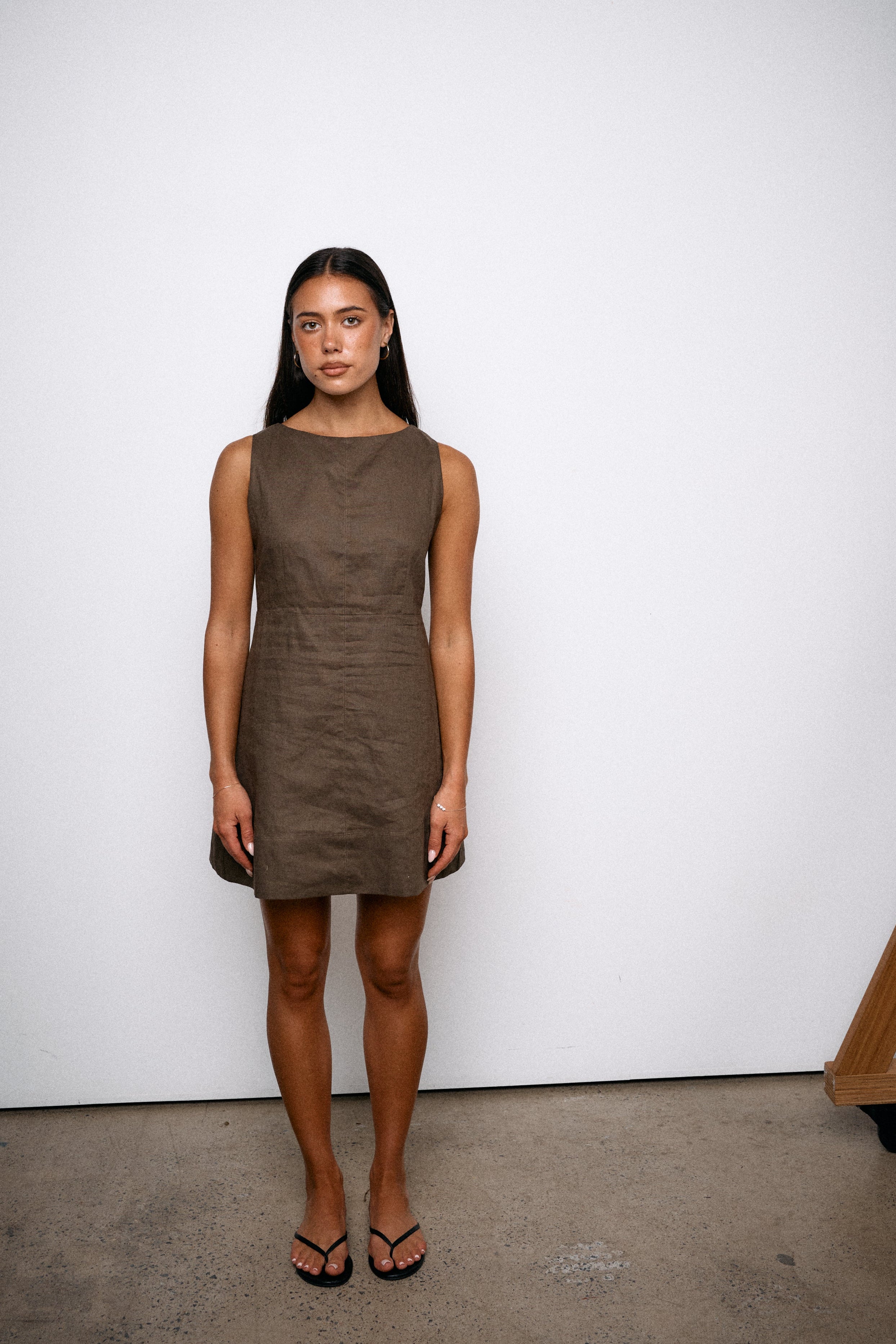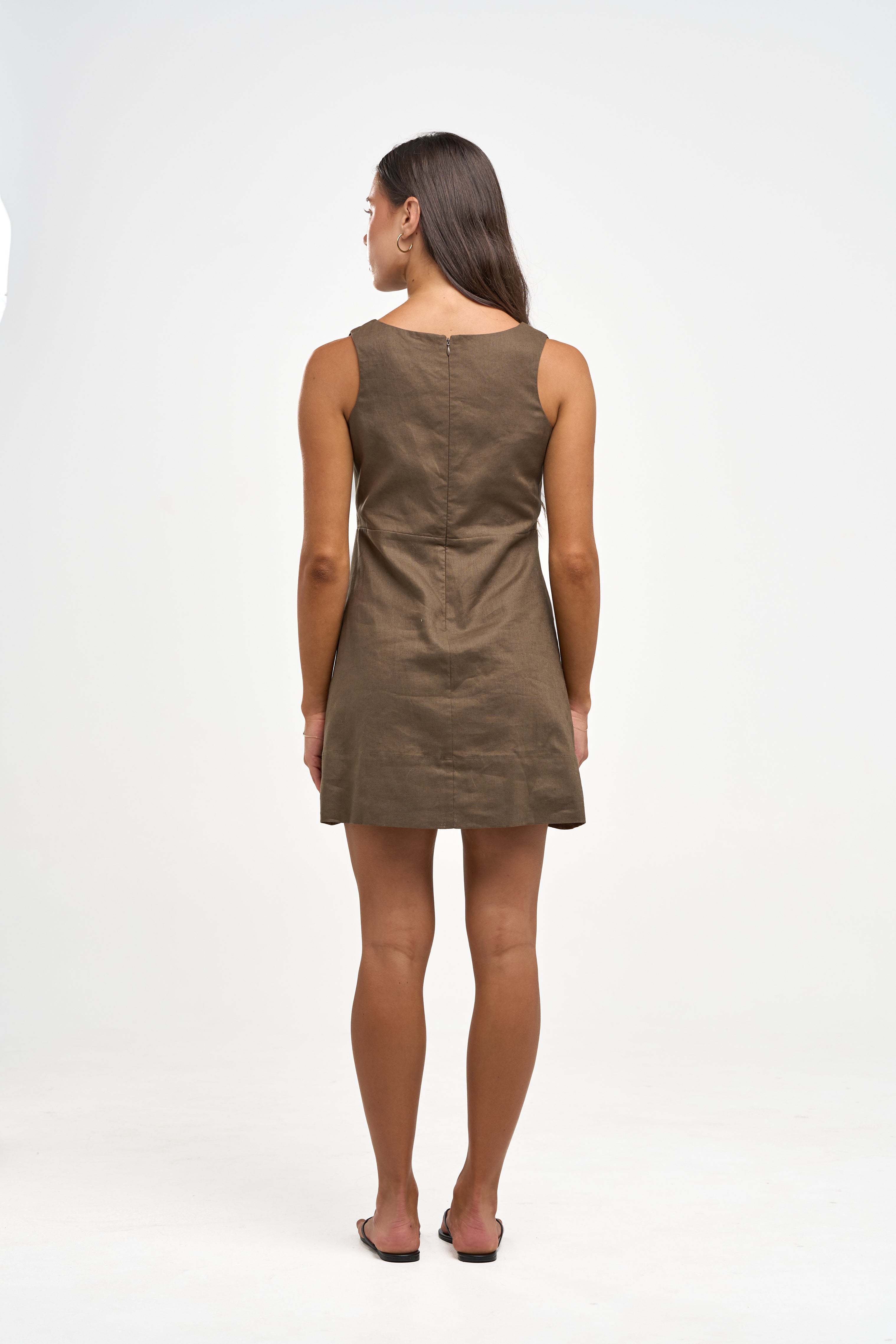 An elevated classic, the Finn Mini has been made using a hemp cotton blend fabric in a dark cocoa base colour and lined in a lightweight organic cotton. Designed to be a close fit and finished with a chic high neckline.