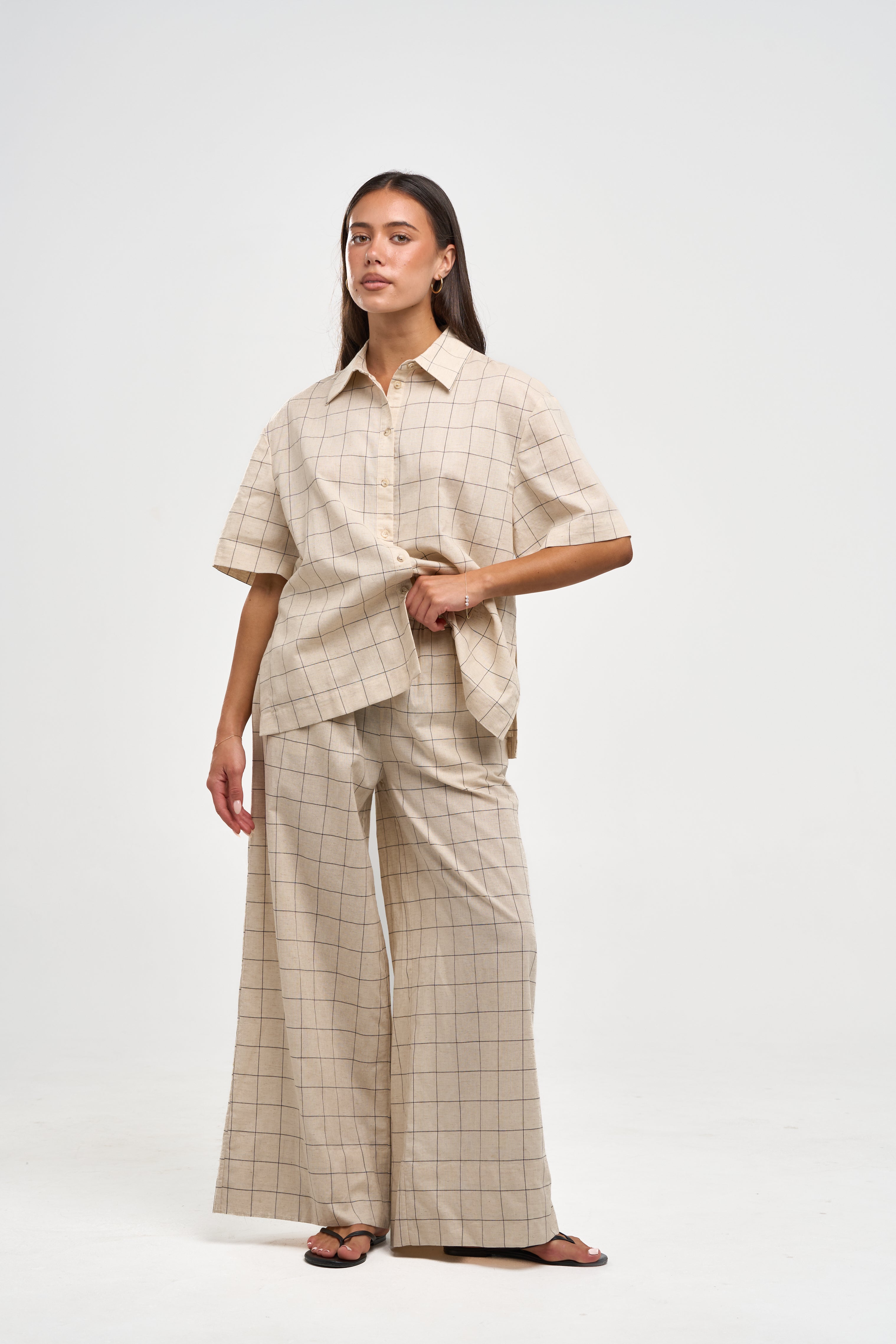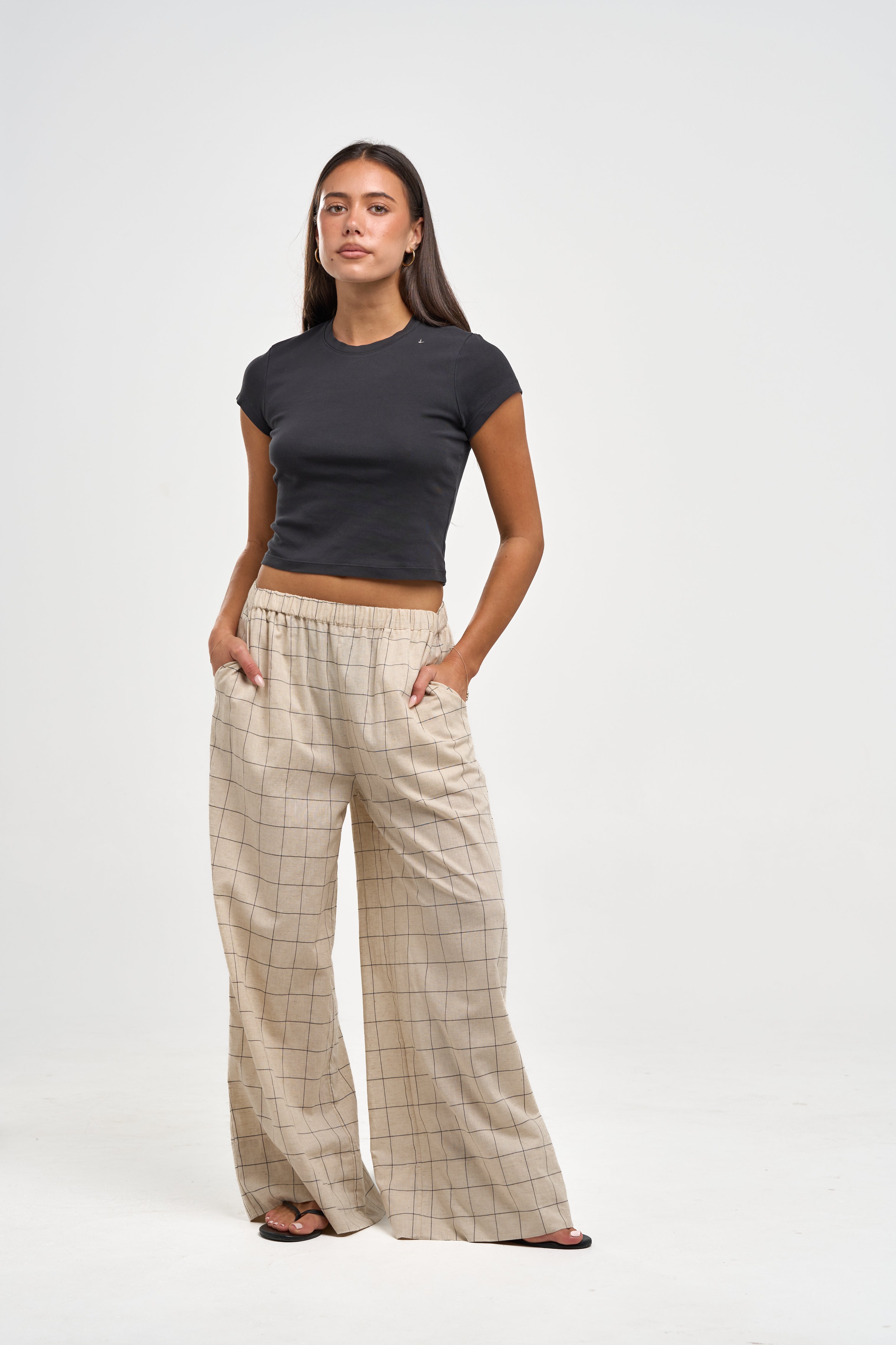 Meet Liv.– Designed to pair back with the Liv Shirt, these pants have been finished with side pockets and an elasticated waistband for a relaxed fit. Made from jacquard check fabric and with a linen cotton blend these pants offer a breathable, soft feel made to last.
