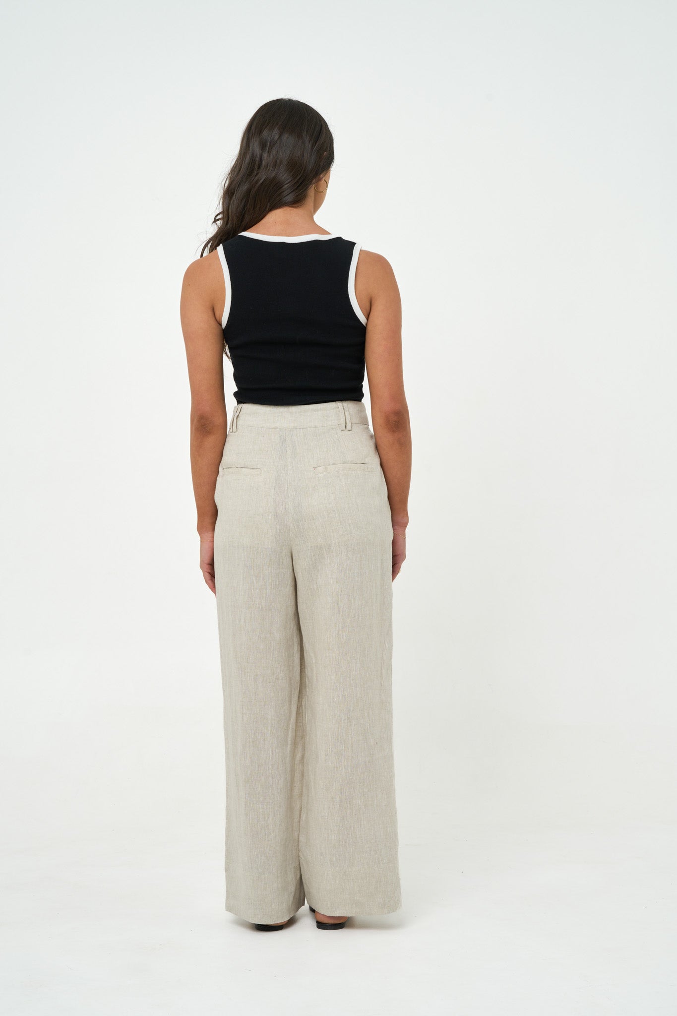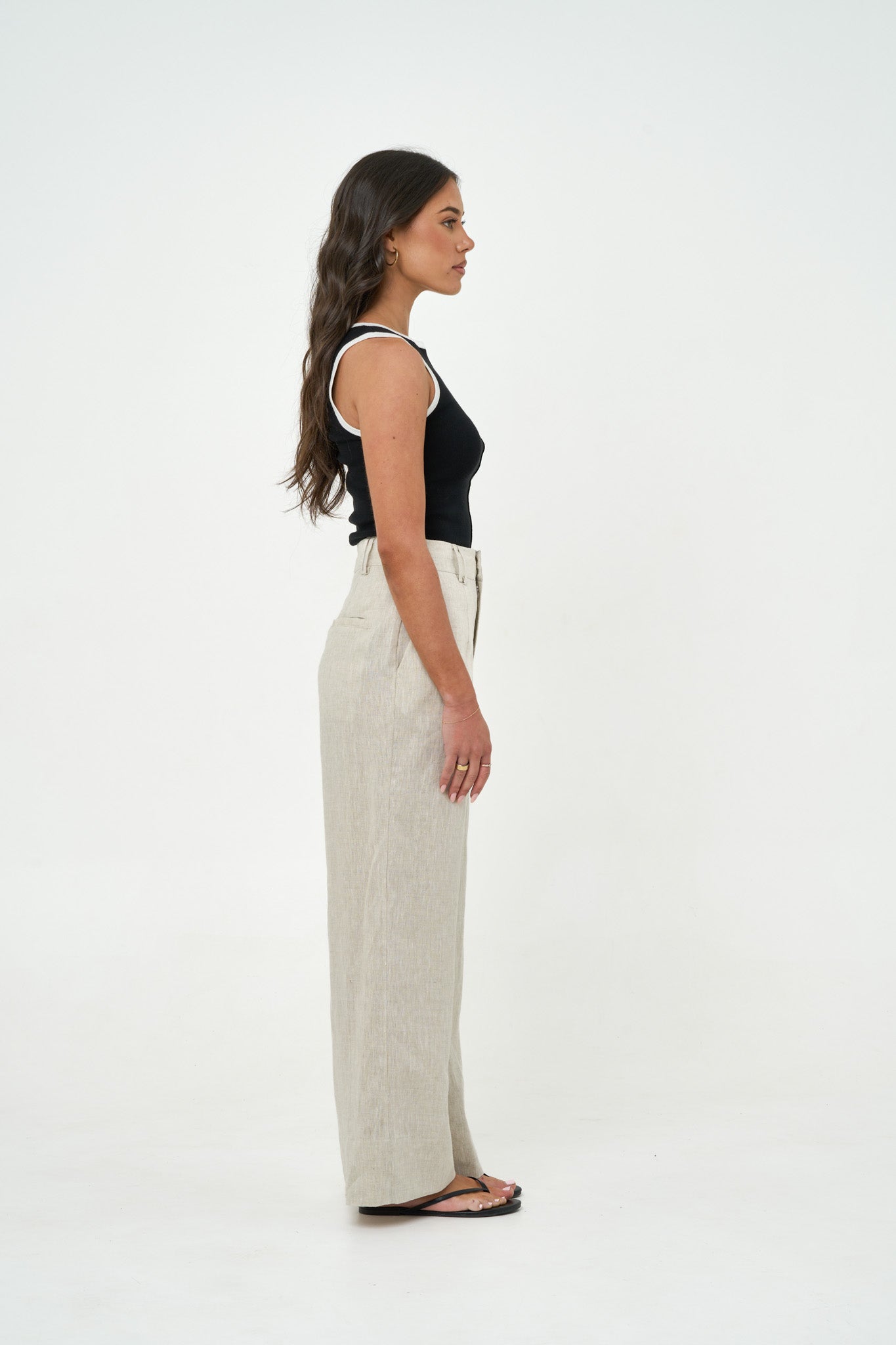 Our Ray Tailored Pant has been made from a mid-heavyweight linen. Designed with a wide leg silhouette and a fixed waistband. Finished with back, side pockets and belt loops.