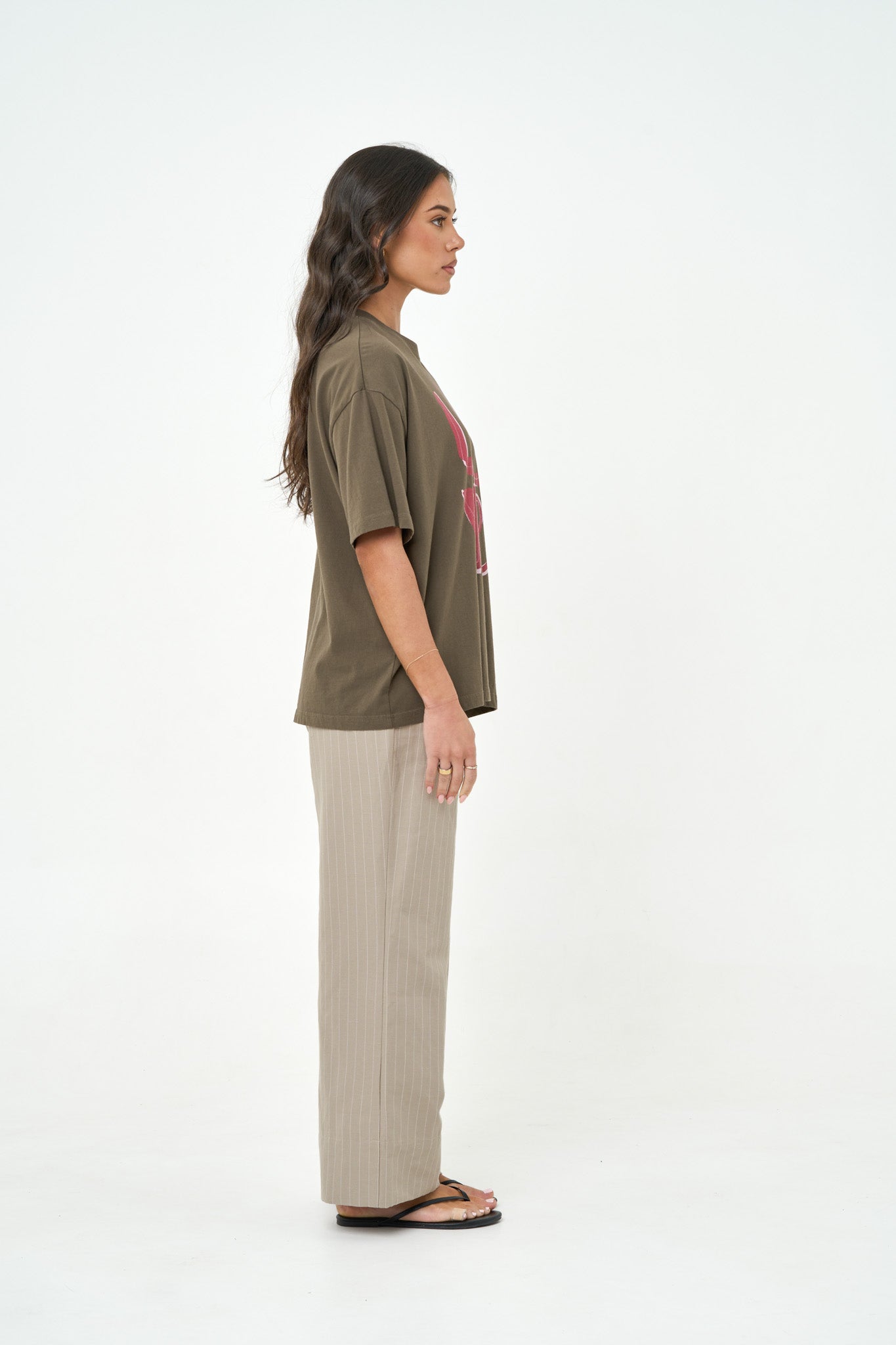 Finished with our in house, hand-drawn print. Wear it relaxed over jeans or layer.